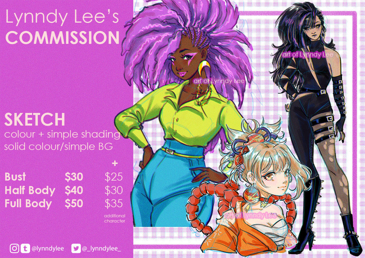 I reserve the rights over the final artwork and will post the artwork on my social media to expand my personal portfolio or promote the service unless requested not to.